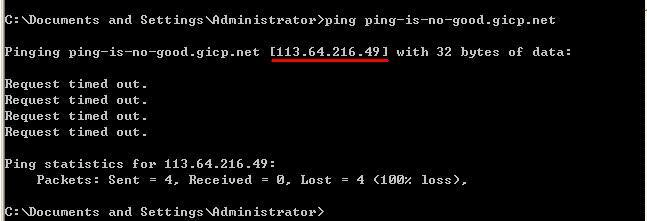 2、您確認(rèn)路由器已經(jīng)設(shè)置好端口映射,windows 防火墻也已經(jīng)關(guān)閉,但是通過域名卻無法遠(yuǎn)程訪問。您在訪問者的電腦上ping 域名,發(fā)現(xiàn)ping 出來的ip 地址和服務(wù)器實(shí)際的公網(wǎng)ip 是不同的,而通過公網(wǎng)ip 是可以訪問的,通過域名就不行。