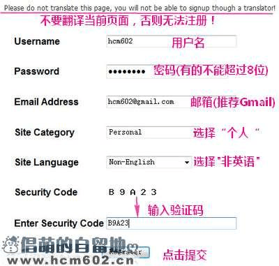 2. 點擊上面的綠色圖標,就會進到注冊界面,按照圖示填寫信息: