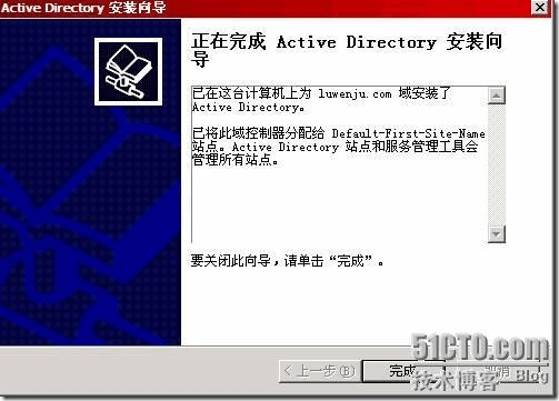 活動目錄安裝完成,單擊完成