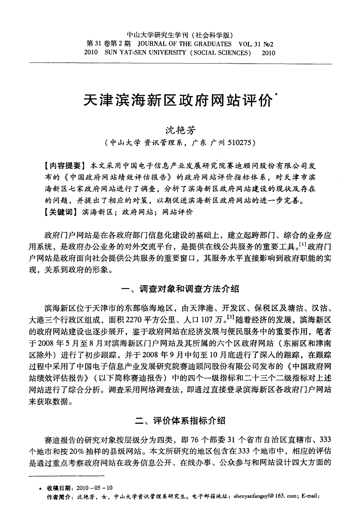 天津?yàn)I海新區(qū)政府網(wǎng)站評(píng)價(jià)