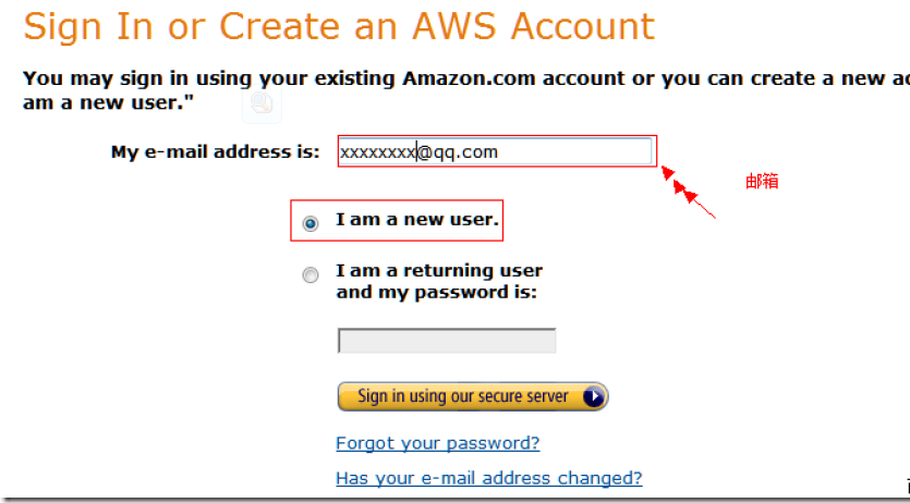 免費(fèi)午餐:亞馬遜免費(fèi)云主機(jī)注冊(cè)使用全攻略登陸以后點(diǎn)注冊(cè)(這時(shí)候還是中文界面,注冊(cè)在哪里你能找到吧?)輸入郵箱,選擇新用戶。 , ,