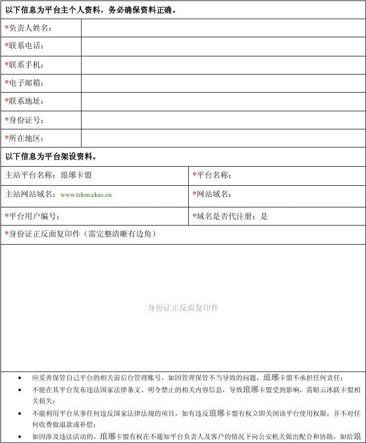瑯琊卡盟下屬VIP 網(wǎng)站架設用戶資料表日期2013 ,提示:1、以上資料中帶“*”為必填項目,將以此來確認您的身份。2、網(wǎng)站域名可選擇智能解析服務,該服務由第三方公司提供,