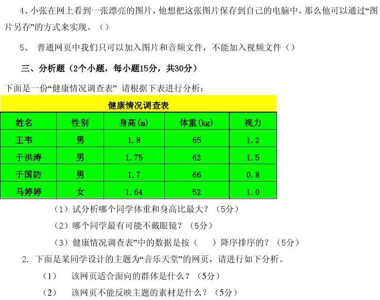 二1、 [解析] 答案錯(cuò)誤電子郵件可以通過附件的形式發(fā)送圖片、音頻、或視頻。但對(duì)附件的大小有限制。