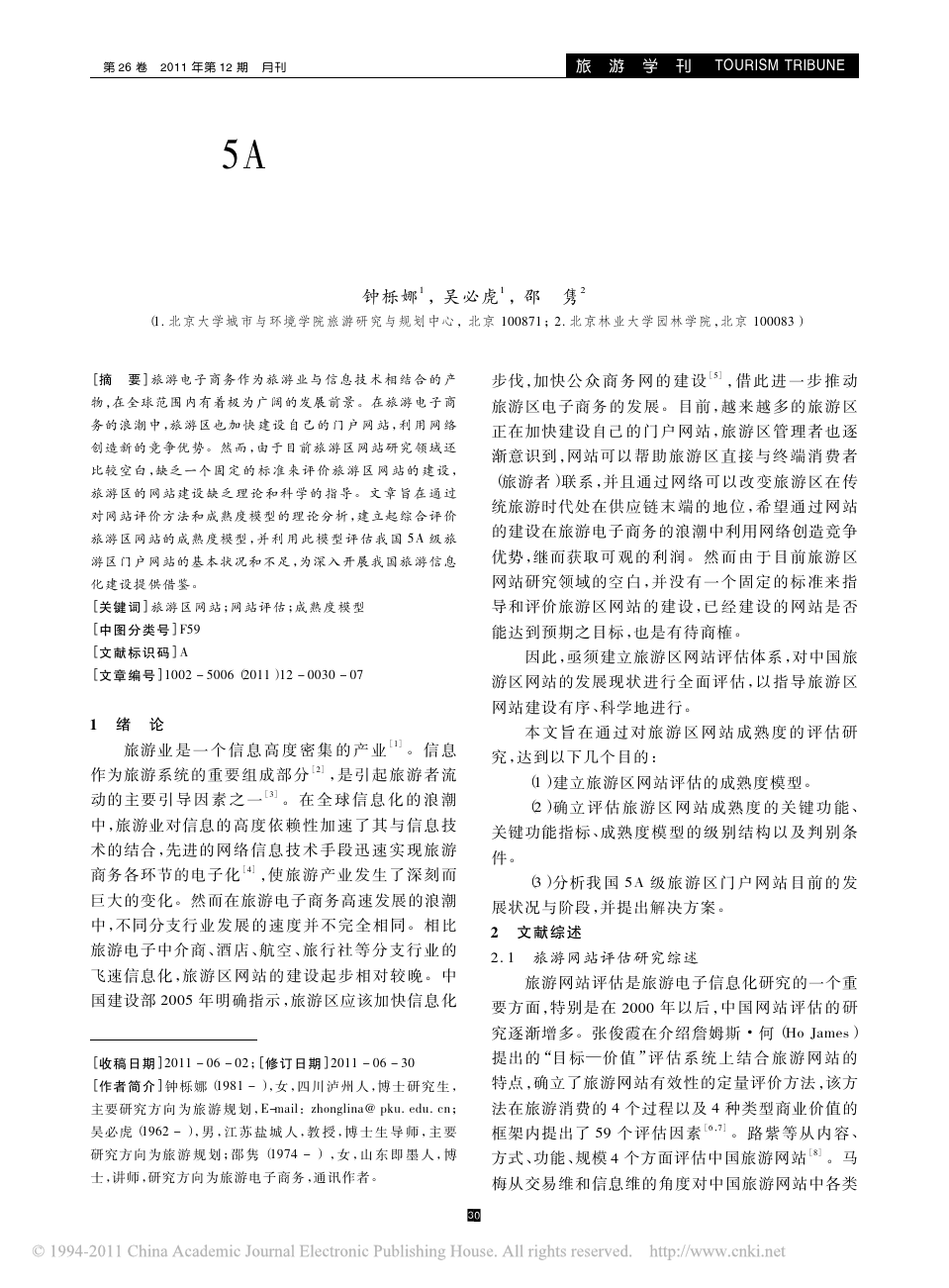 中國(guó)5A級(jí)旅游區(qū)門戶網(wǎng)站的成熟度評(píng)估