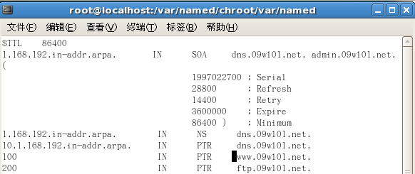 5. 命令:vi 09wl01.net.zone,編輯正向搜索區(qū)域