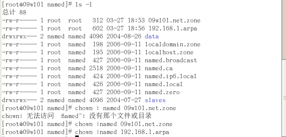 7. 將09wl01.net.zone 及192.168.1.arpa 文件變成named 組所屬