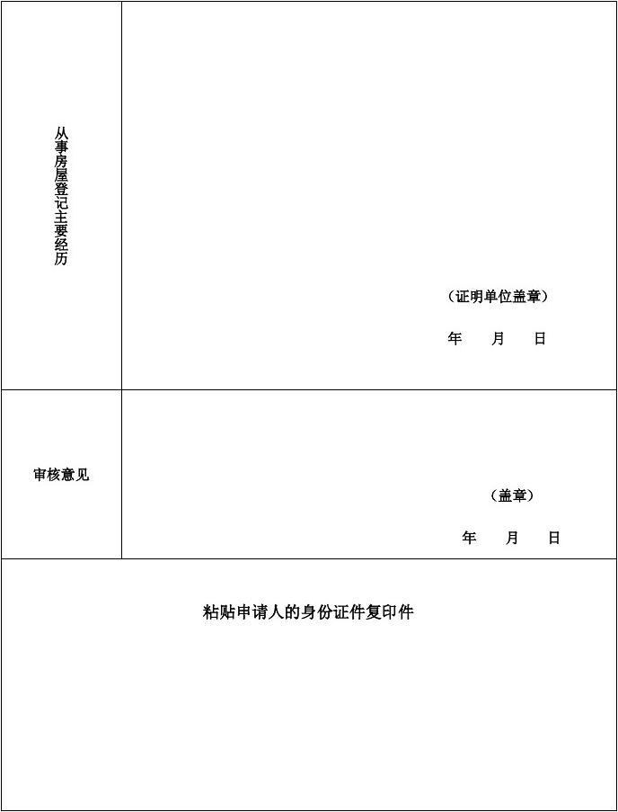 7、現(xiàn)從事崗位:填寫申請人目前從事的崗位。如:在房屋登記機構(gòu)填寫受理詢問、審核、登簿、質(zhì)量管理等;在房地產(chǎn)管理部門填寫房地產(chǎn)管理、房地產(chǎn)法務(wù)等。