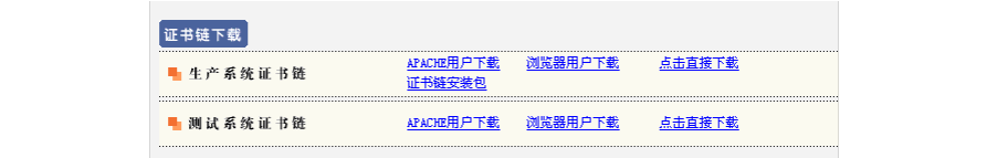 或者直接在CFCA 網(wǎng)站上下載證書鏈(選擇APACHE 用戶下載):http://www.cfca.com.cn/zhengshu/zhengshu.htm#2
