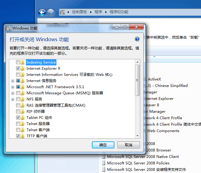 2.1配置安裝IIS6.0。找到控制面板>程序>程序和功能>打開或關(guān)閉Windows 功能(如下圖所示)