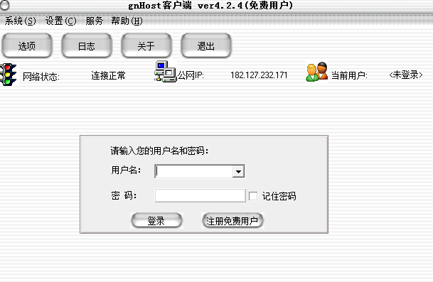 ,下載Windows 版本的寬帶通gnHost 。運(yùn)行該客戶端軟件。出現(xiàn)如下介面