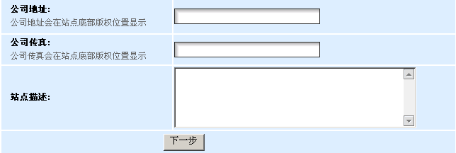 點(diǎn)擊“下一步”進(jìn)入網(wǎng)站基本信息設(shè)置頁面。