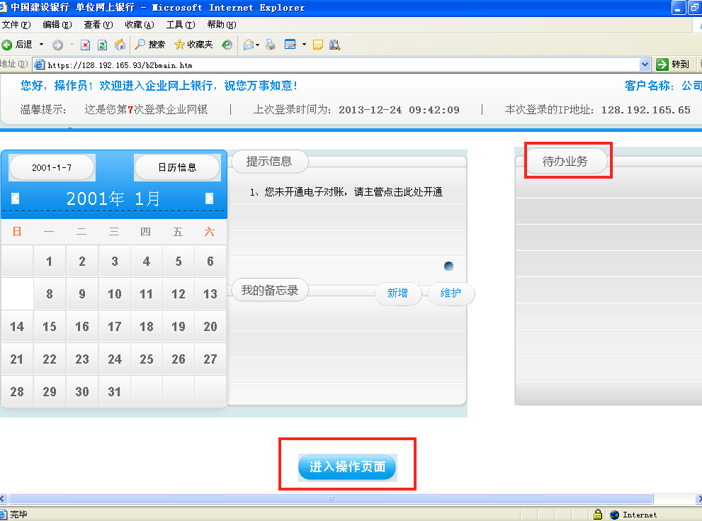 第六步:進入歡迎頁面后,點【進入操作頁面】。(如下圖)