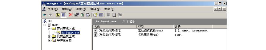 22. 在DNS 管理器里,打開剛創(chuàng)建的主要區(qū)域hz.benet.com 。