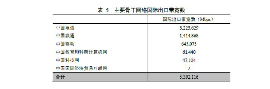5 主要骨干網(wǎng)絡(luò)國際出口帶寬數(shù)