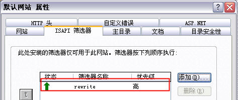 打開“控制面板→管理工具→IIS信息服務(wù)管理器→網(wǎng)站→您的站點(diǎn)→屬性”。在“ISAPI篩選器”項(xiàng)點(diǎn)擊 “添加”, 篩選器名稱填入Rewrite ,可執(zhí)行文件為C:RewriteRewrite.dll (如果您解壓到其它目錄請(qǐng)?zhí)钊胂鄳?yīng)地址)