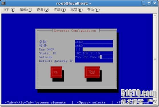按tab 鍵移動 按空格選擇不啟用DHCP 之后tab 到 ok 上保存回車