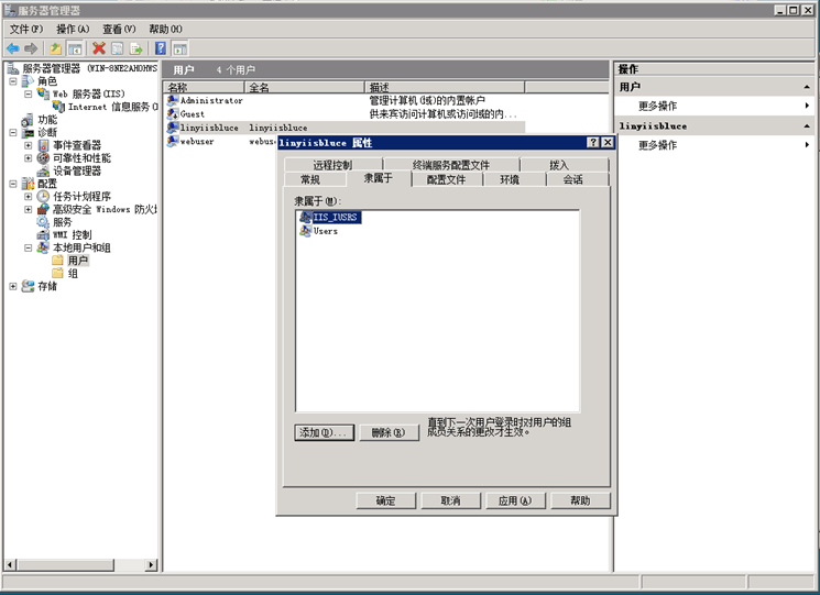 10.1.1 不同域名綁定不同的站點圖10-1 創(chuàng)建新用戶圖10-2 設置屬性 ,圖10-3 點擊查找選擇組圖10-4 選擇IIS_IUSERS