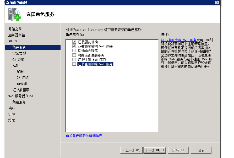 6、將證書頒發(fā)機(jī)構(gòu)、證書頒發(fā)機(jī)構(gòu)WEB 注冊勾選上,然后點(diǎn)擊【下一步】