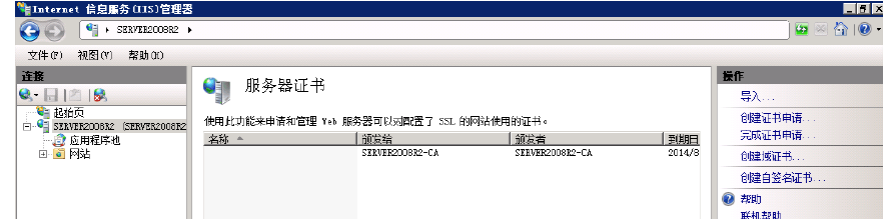 2、點(diǎn)擊【服務(wù)器證書】,找到【創(chuàng)建證書申請】項(xiàng)