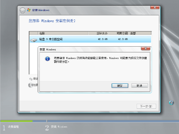 這里會提示,意思大致為在創(chuàng)建系統(tǒng)分區(qū)的同時會多創(chuàng)建出一個引導(dǎo)分區(qū)。創(chuàng)建完成后會是