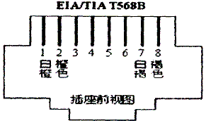 ● EIA/TIA 568B標準的RJ45接口線序如下圖所示,3、4、5、6四個引腳的顏色分別為___(40)___。