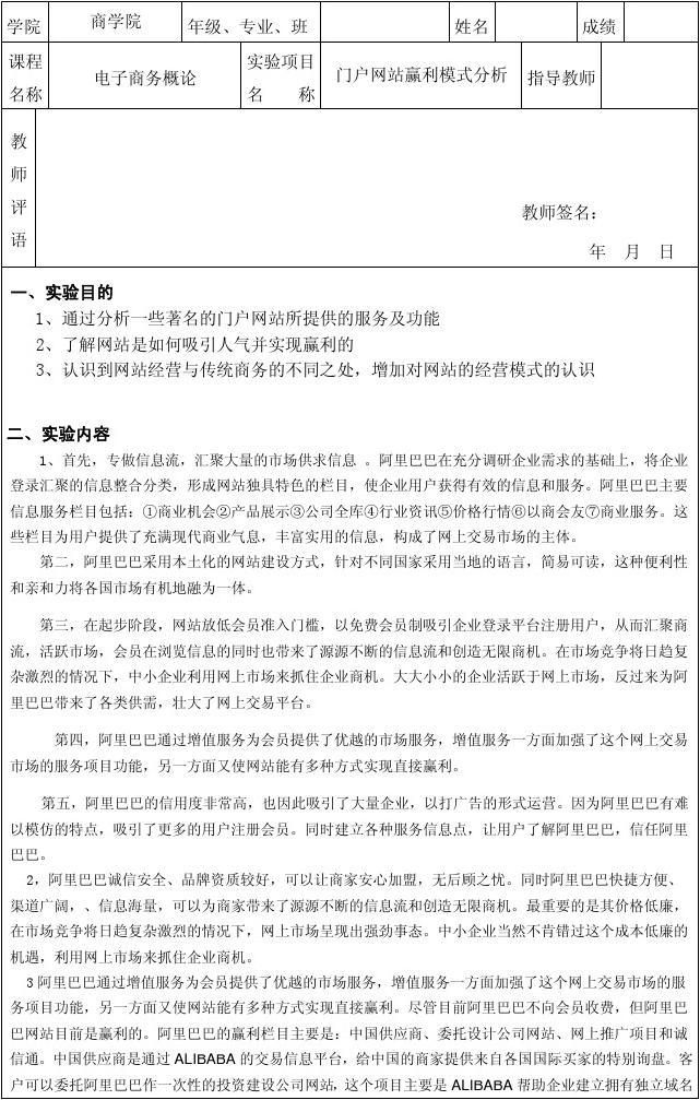 ……………………………………………裝……………………………………訂……………………………………線……………………………………………………………《電子商務(wù)概論》實(shí)驗(yàn)報(bào)告一第 1 頁