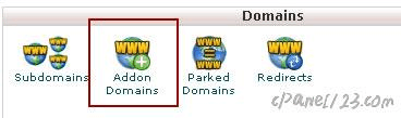 1, 首先登陸到Cpanel 控制面板。點擊附加域(addon domain)。操作如下圖: