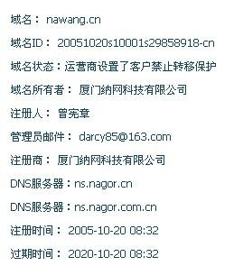 Whois.chinaz.com ,輸入nawang.cn 得到如下圖信息。