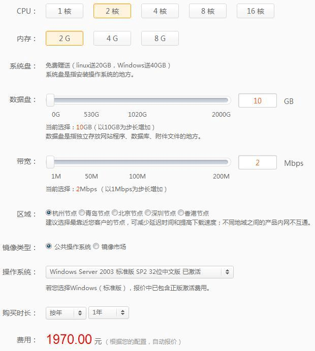 附件2:阿里云主機配置表