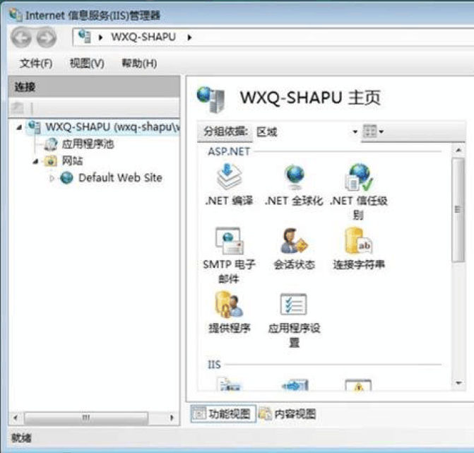 1、打開Internet 信息服務(wù)(IIS)管理器介面(開始——管理工具——Internet 信息服務(wù)管理器。)IIS 管理介面由三部分組成由左到右分別是連接管理、應(yīng)用服務(wù)管理、操作管理。通過連接管理可以配置網(wǎng)站,添加網(wǎng)站,設(shè)置網(wǎng)站地址池等。