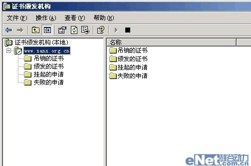 第一步:通過任務(wù)欄的“開始->程序->管理工具->證書頒發(fā)機構(gòu)”來打開證書設(shè)置窗口。(如圖8)