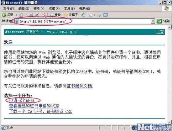 IIS 啟動后我們就可以通過網(wǎng)頁來申請證書了。