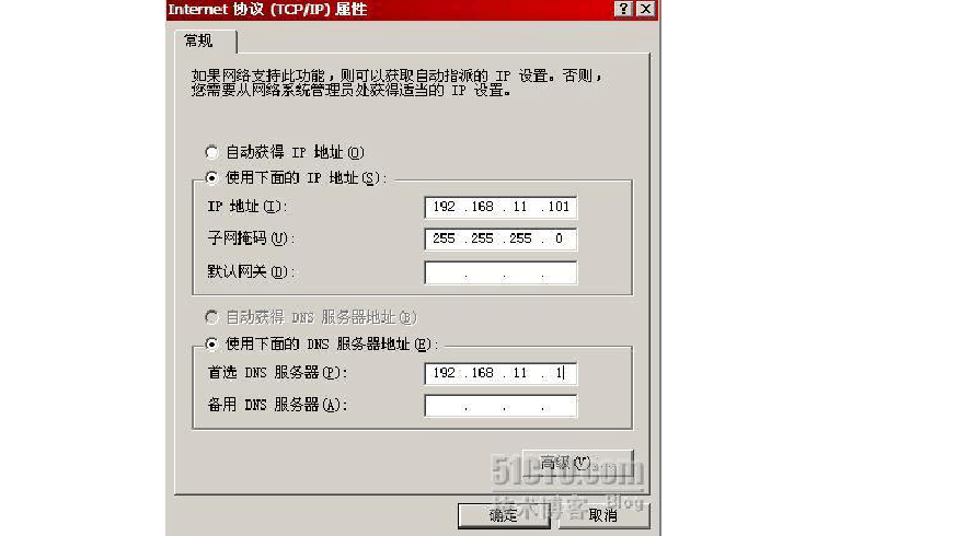 有了DNS 的支持,我們現(xiàn)在可以開(kāi)始創(chuàng)建域控制器了,域控制器是域中的第一臺(tái)服務(wù)器,域控制器上存儲(chǔ)著Active Directory ,可以說(shuō),域控制器就是域的靈魂。我們準(zhǔn)備在Florence 上創(chuàng)建域控制器,首先檢查Florence 網(wǎng)卡的TCP/IP屬性,注意,F(xiàn)lorence 應(yīng)該使用192.168.11.1作為自己的DN S 服務(wù)器。因?yàn)槲覀儎倓傇?92.168.11.1上創(chuàng)建了adtest.com 區(qū)域。 如下圖所示,在Florence 上運(yùn)行Dcpromo ,開(kāi)始域控制器的創(chuàng)建。
