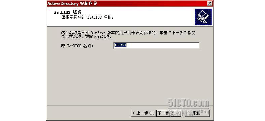 域的NETBIOS 名稱(chēng)是ADTEST ,由于. 在NETBIOS 名稱(chēng)中是非法字符,因?yàn)榛旧嫌虻腘ETBIOS 名稱(chēng)就是域名中. 之前的部分。