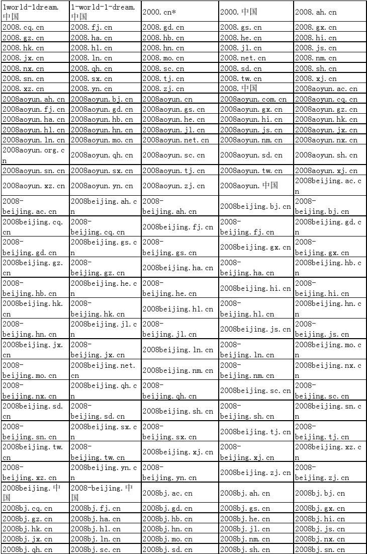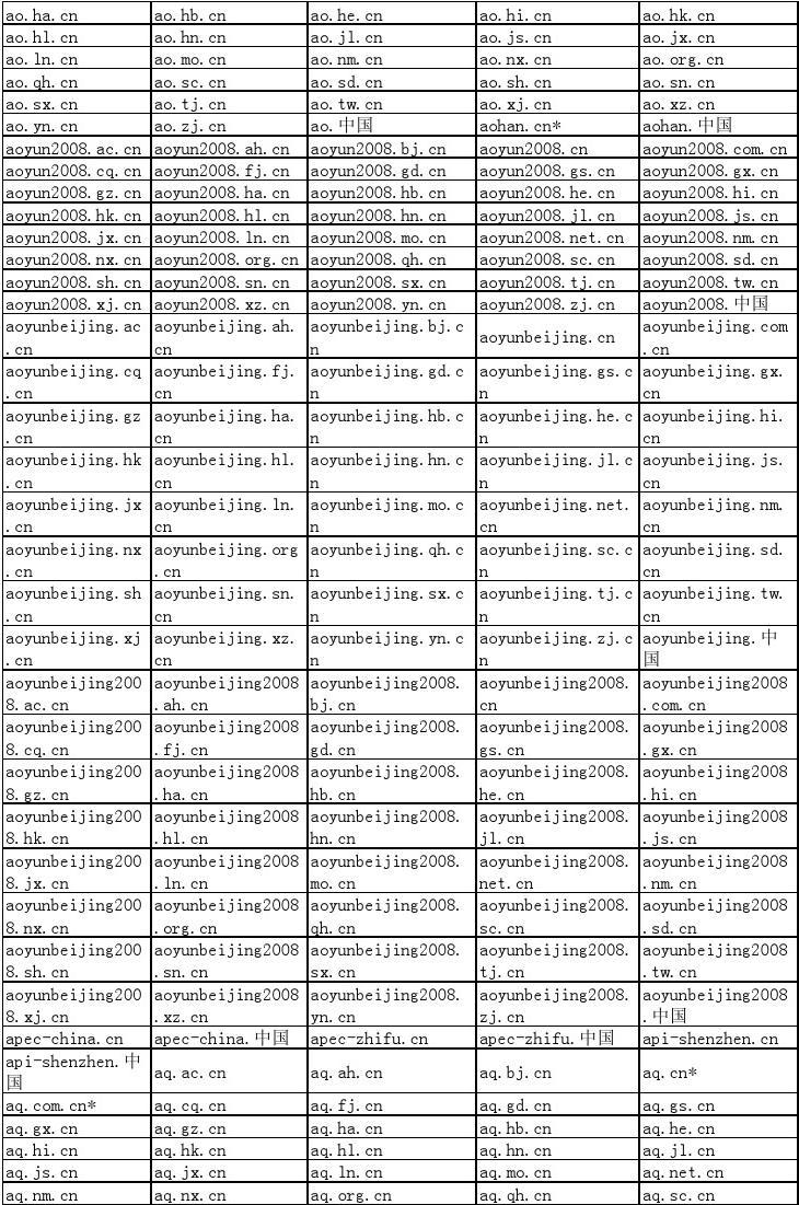 日升期可申請(qǐng)的域名列表(CN保留域名列表)