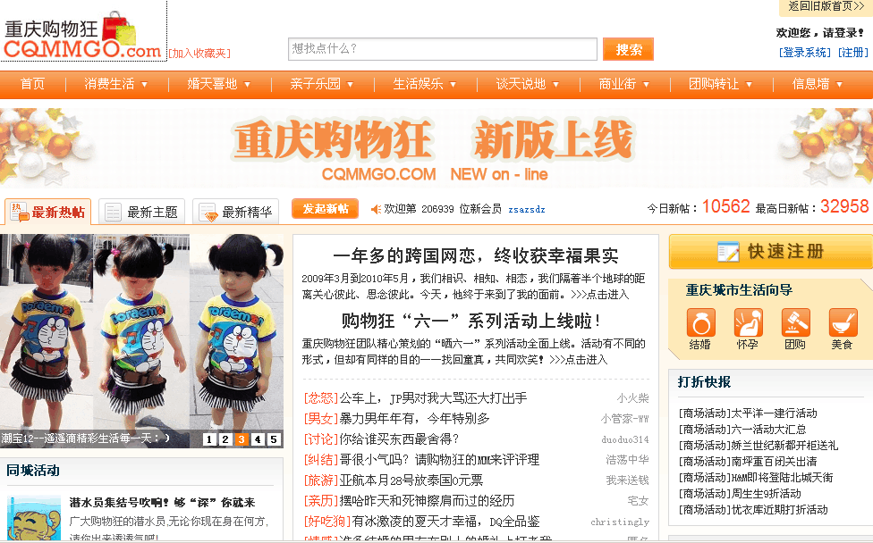社區(qū)前期主頁基本都是列表式,好處是上線快,維護簡單,發(fā)帖方便,運營成本低廉。典型如重慶“購物狂”: