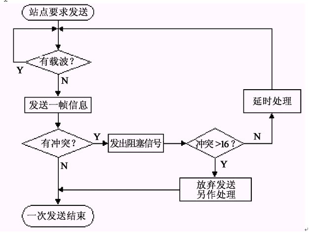 答:(CSMA/CD)介質(zhì)訪問技術(shù)是以太網(wǎng)使用的介質(zhì)訪問控制技術(shù)。它是一種隨機訪問爭用信道的技術(shù),由ALOHA 技術(shù)衍變而來。 ALOHA的方案是非常簡單的,網(wǎng)上任何一個站點的地位都是一樣的,任何一個站點如果有數(shù)據(jù)需要發(fā)送則立即搶占信道發(fā)送數(shù)據(jù)幀,如果發(fā)送后發(fā)生了沖突就隨機等待一段時間,然后重發(fā)。其具體算法如下圖。