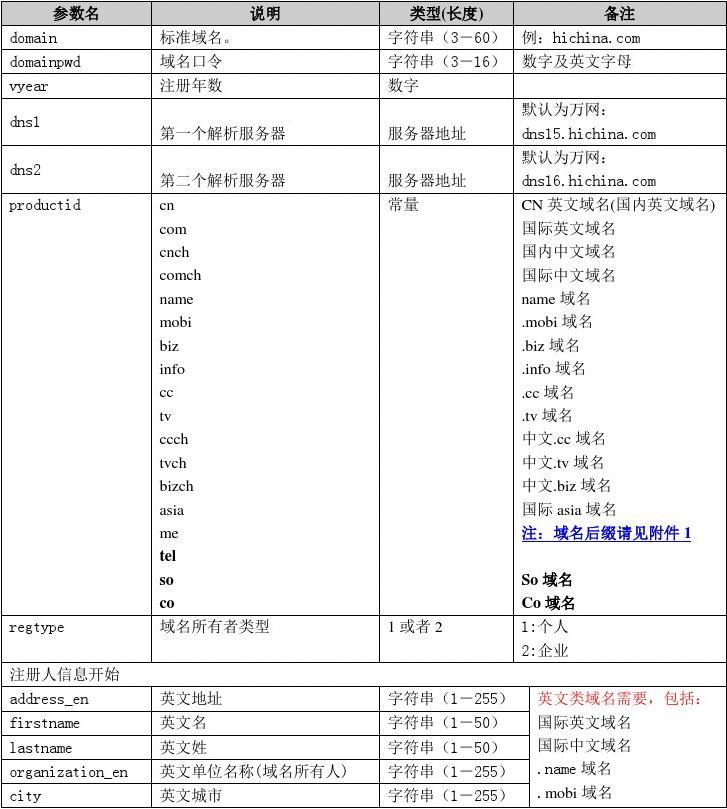 正式URL :http:// api.hichina.com/wwwnetcn.aspx