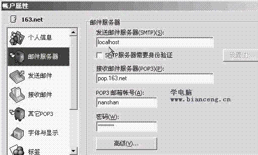 ,如果你想要用自己的SMTP 服務(wù)器發(fā)信,只需將你E-mail 客戶端軟件設(shè)置中“發(fā)送郵件服務(wù)器(SMTP )”項(xiàng)中填入“l(fā)ocalhost ”,則不管你的IP 地址如何變化,它都能正常工作, 如圖6 。
