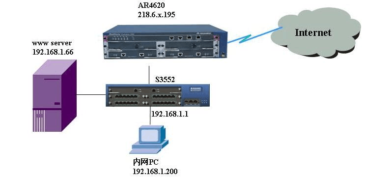 前兩天剛看到二線兄弟寫的一篇案例“DMZ 區(qū)域服務(wù)器的NAT 應(yīng)用”,正好處理辦事處一個(gè)客戶問題時(shí)碰到,客戶組網(wǎng)其實(shí)很簡單,內(nèi)網(wǎng)通過三層交換機(jī)連到出口路由器再做NAT 上網(wǎng),交換機(jī)起三層,接了WWW 服務(wù)器通過靜態(tài)NAT 向外發(fā)布。外網(wǎng)訪問WWW 服務(wù)器沒有任何問題,問題出在內(nèi)網(wǎng)對這幾臺服務(wù)器的訪問,由于WWW 服務(wù)器上很多的超鏈接或者搜索結(jié)果是通過WWW 的公網(wǎng)IP 鏈接的,所以客戶要求內(nèi)網(wǎng)必須支持通過域名和公網(wǎng)IP 訪問www 服務(wù)器。