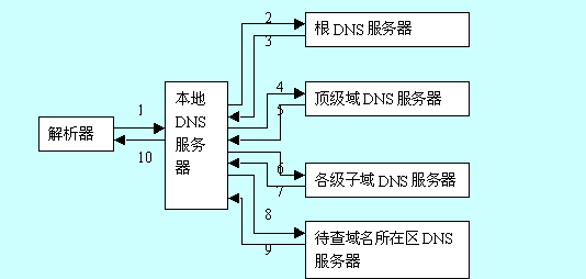 域名服務(wù)器的樹型邏輯結(jié)構(gòu)是域名解析算法賴以實(shí)現(xiàn)的基礎(chǔ)??偟膩碚f,域名解析采用自頂向下的算法。但由于在因特網(wǎng)中域名解析頻繁發(fā)生,為了減輕根域名服務(wù)器的負(fù)擔(dān),實(shí)際的域名解析是從本地域名服務(wù)器開始的。