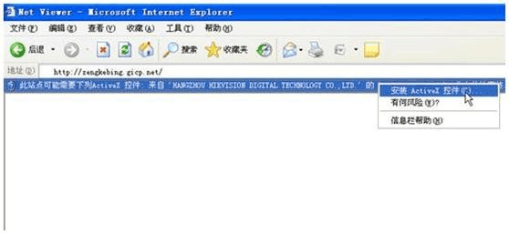 打開瀏覽器,在地址欄里面輸入動態(tài)域名zengkebing.gicp.net 敲回車鍵,會得到一個以下的提示,需要安裝一個來自“杭州??低晹?shù)字技術(shù)股份有限公司”的一個控件,這個是我們必須要安裝的,點擊提示按左鍵進(jìn)行安裝。