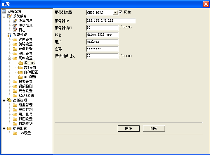 服務(wù)器類型:選擇CN 99 DDNS,同時將“使能”選中;