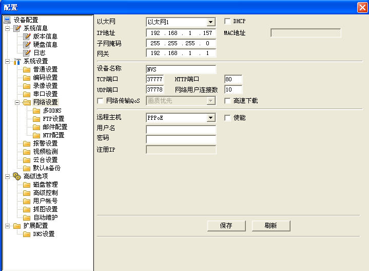 首先,需要確認(rèn)監(jiān)控設(shè)備的網(wǎng)絡(luò)端口號和IP 地址,網(wǎng)絡(luò)端口號默認(rèn)是80和37777,如果有多臺設(shè)備,可以將端口號設(shè)置成不同的值,各設(shè)備之間的TCP 和HTTP 端口都需要不同。設(shè)備的IP 地址必須跟路由器的IP 在同一個網(wǎng)段。本例中將假設(shè)設(shè)備端口號為80和37777,IP 地址為192.168.1.157。