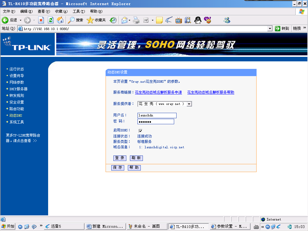如圖所示:我們一般是在動態(tài)DNS 里進行花生殼域名邦定的,只要將你申請的花生殼客戶端的用戶名和密碼輸入,然后連接,如果連接成功,則表示路由器和花生殼邦定成功。