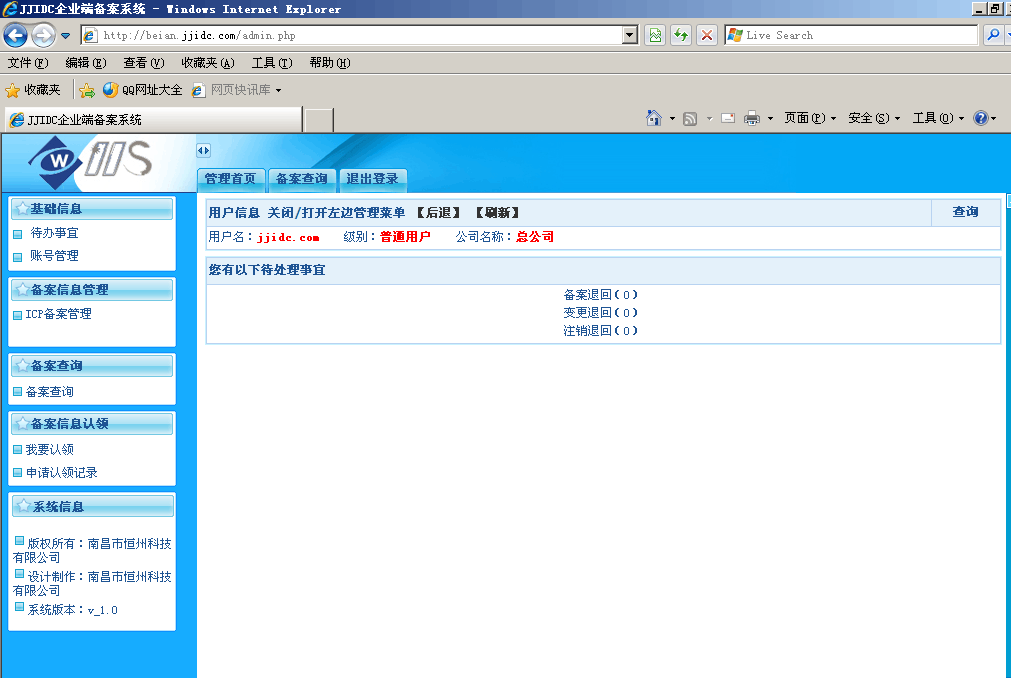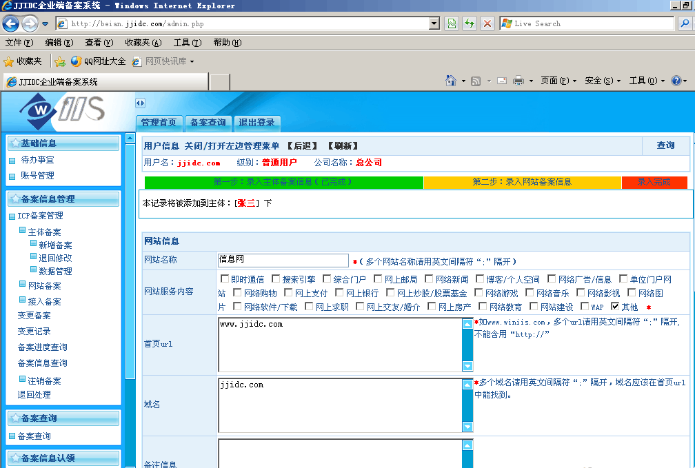 打開備案系統(tǒng)網(wǎng)站:http://beian.jjidc.com/,登錄備案系統(tǒng), 現(xiàn)在就可以開始填寫備案資料了。