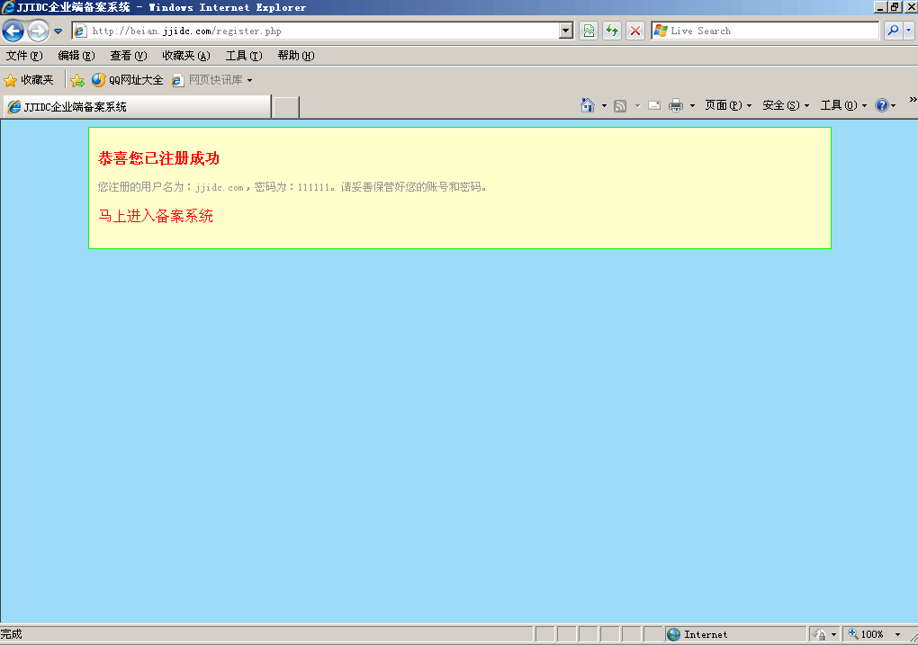 提交成功之后提供您備案的主辦單位名稱(個人就提供個人名字,公司就提供公司名稱)、您在JJIDC 注冊的ID 、有效證件的掃描件(主辦單位為個人需要身份證掃描件,若為單位請登記單位(公司) 名稱, 有效證件為營業(yè)執(zhí)照掃描件,機關(guān)單位提供組織機構(gòu)代碼證掃描件),提供這3樣給備案專員,備案專員QQ51859672。