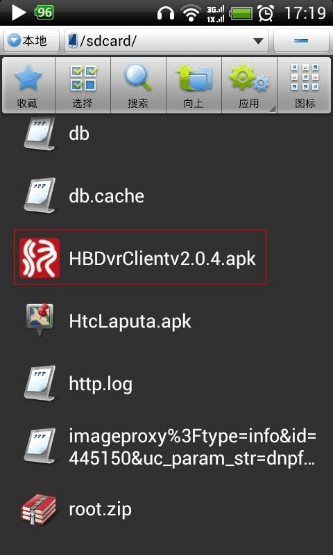 將手機客戶端程序 HBDVRClientv2.0.4.apk 拷貝手機客戶端到手機內(nèi)存卡中