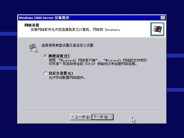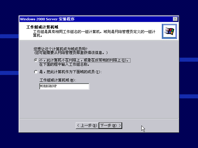 在安裝過程中,可以指定網(wǎng)絡(luò)設(shè)置如TCP/IP屬性設(shè)置,指定工作組名或者域名等。