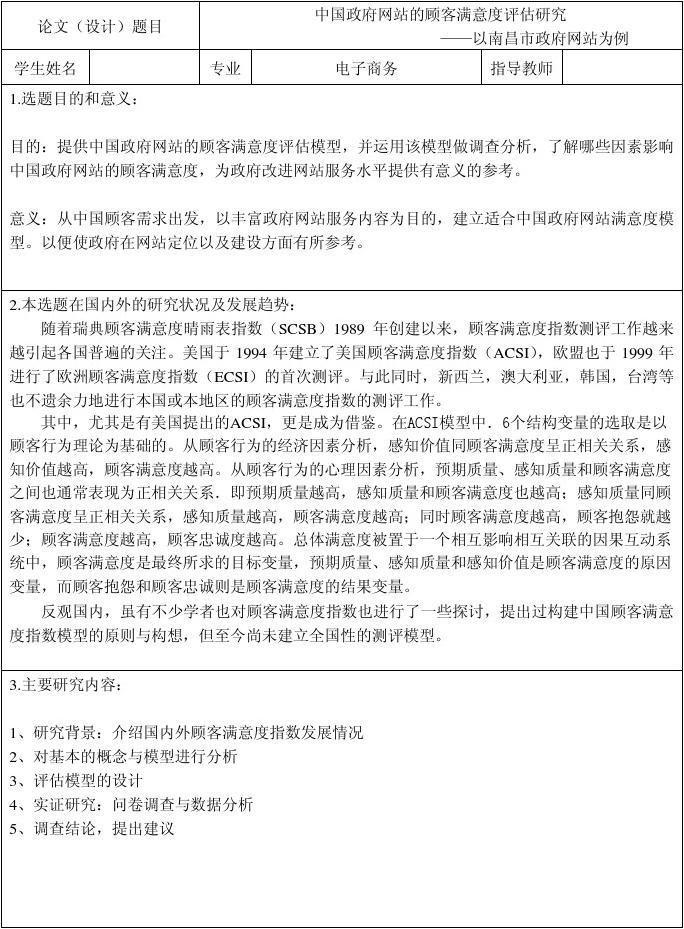 中國政府網(wǎng)站的顧客滿意度評(píng)估研究-開題報(bào)告及任務(wù)書